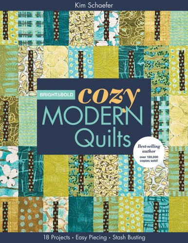 I had just been reading Kim Schaefer's book "Cozy Modern Quilts" and grabbed that off the table. Sure enough, on page 58 was the perfect quilt for these fabrics. Each square has a plan, so that is where I came up with this being a planned, scrappy quilt.